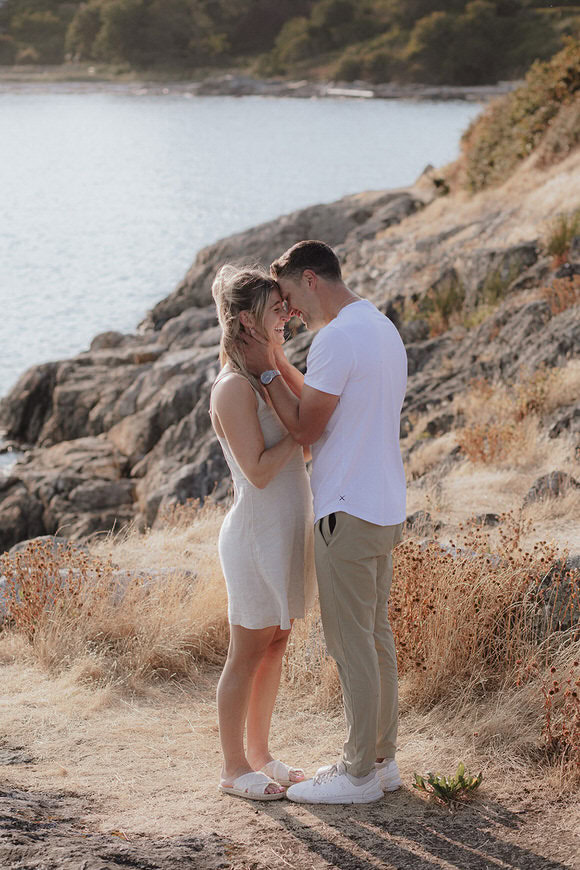For their photos, we chose Cattle Point and Uplands Park because of its quiet and natural setting, gorgeous evening light, and the fact that this spot offers both garry oak meadows and sweeping beach and cliffside views. It’s easy to relax, take in the beauty and enjoy the experience and moment in these spaces and guide couples to connect with each other.